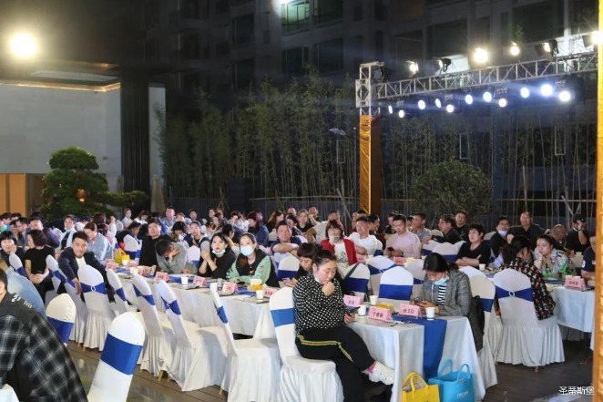 经销商晚宴当日晚6时许,以【乘“圣”跨越】为主题的,星空电竞集团集团第45届国际家具展接待晚宴暨2020年度优秀经销商颁奖盛典,在营销中心四楼景观花园隆重举行,来自全国各地的经销商朋友欢聚一堂,共同分享一场精彩纷呈的晚宴。