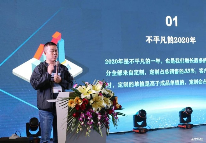 华灯璀璨的开场仪式,点燃了现场如火如荼的气氛。星空电竞集团集团营销总经理陈玉伟先生对晚会进行了主题发言,他对2020年的营销工作进行了总结,并着重从营销工作部署、重点项目开展、产品整合、拎包帮扶、渠道运营和移动+定制整装优势等方面对2021年的营销工作做了全面的统筹规划。同时,他还讲解了“美国梦凯莎床垫”新品的产品工艺、市场优势、产品定位,使经销商对我们的新产品拥有更深入的认识和了解。