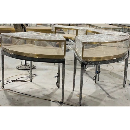 弧形黄金珠宝展柜_不锈钢黄金饰品玻璃展示柜