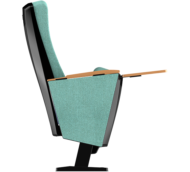 3.写字板:内藏式写字板,支架采用16mm 直径实心圆钢支撑结构,面板采用高密度中纤板,外压三胺板,四周PVC封边,写字板面板尺寸为长度为250±2mm,宽度为240±2 mm,厚度为15mm,扶手和写字板向上倾斜6.5度保证书写舒适自然状态,写字板打开回收时需带消音功能,不可有反弹力与燥音的出现。