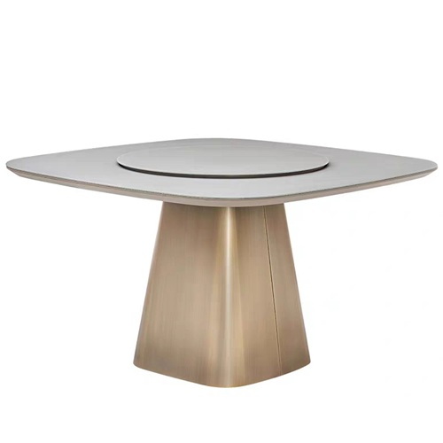 餐厅家具厂家为您展示私房菜包间不锈钢轻奢带转盘餐桌图片展示\价格说明\定做服务。
