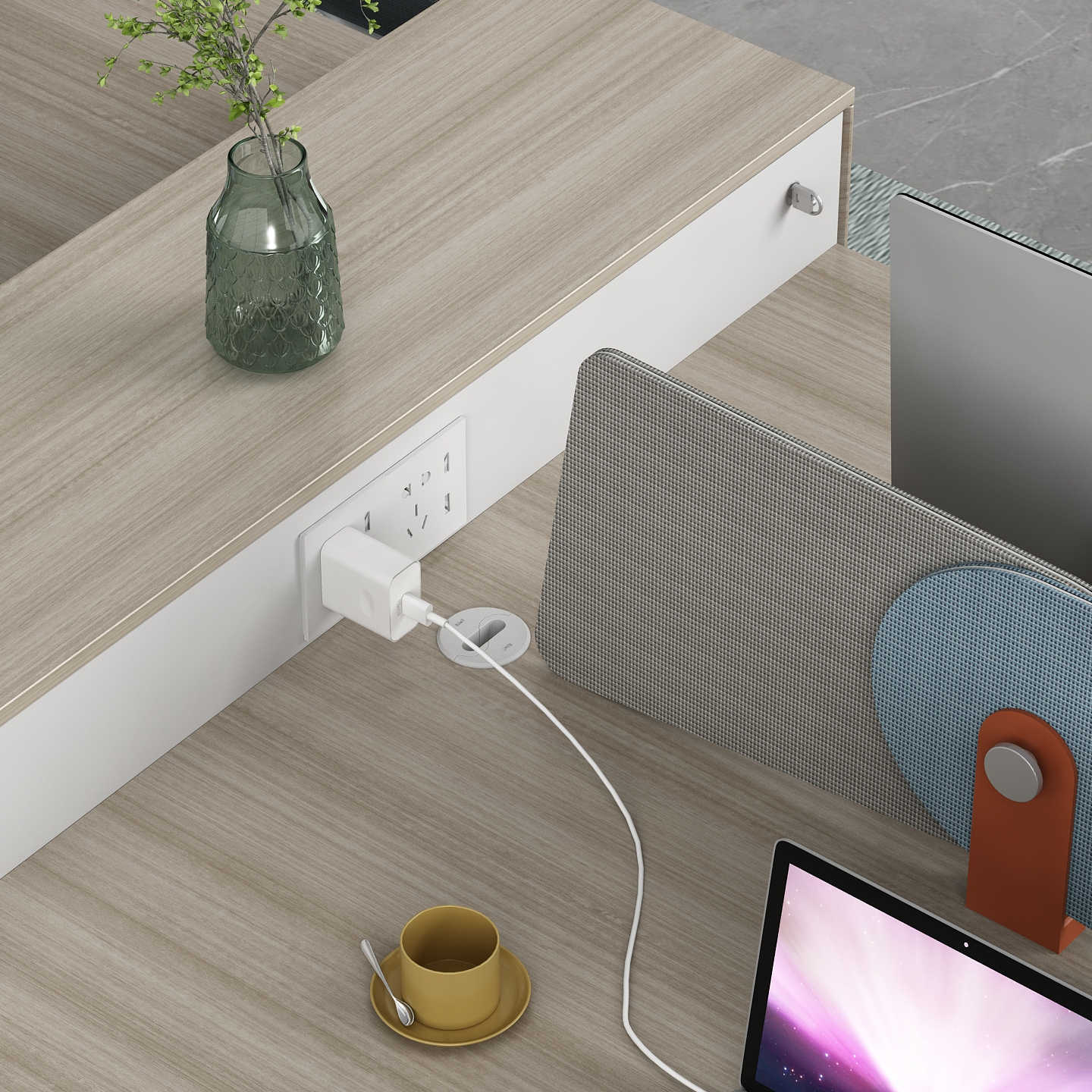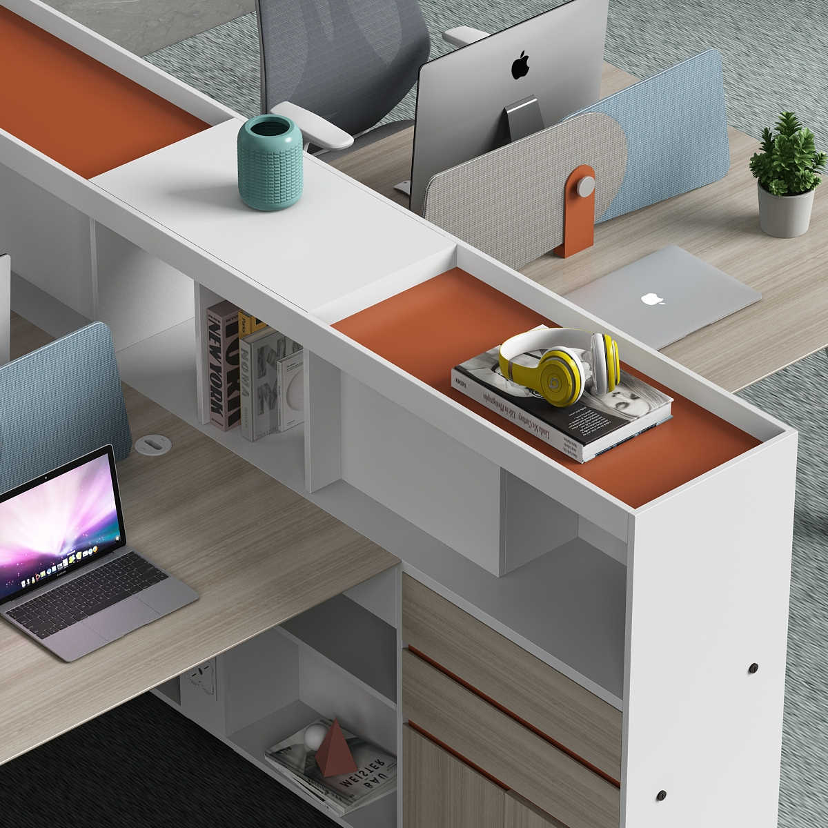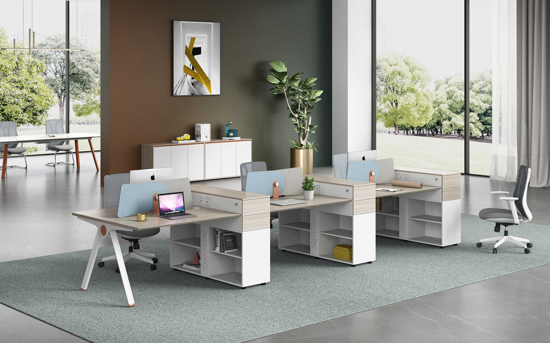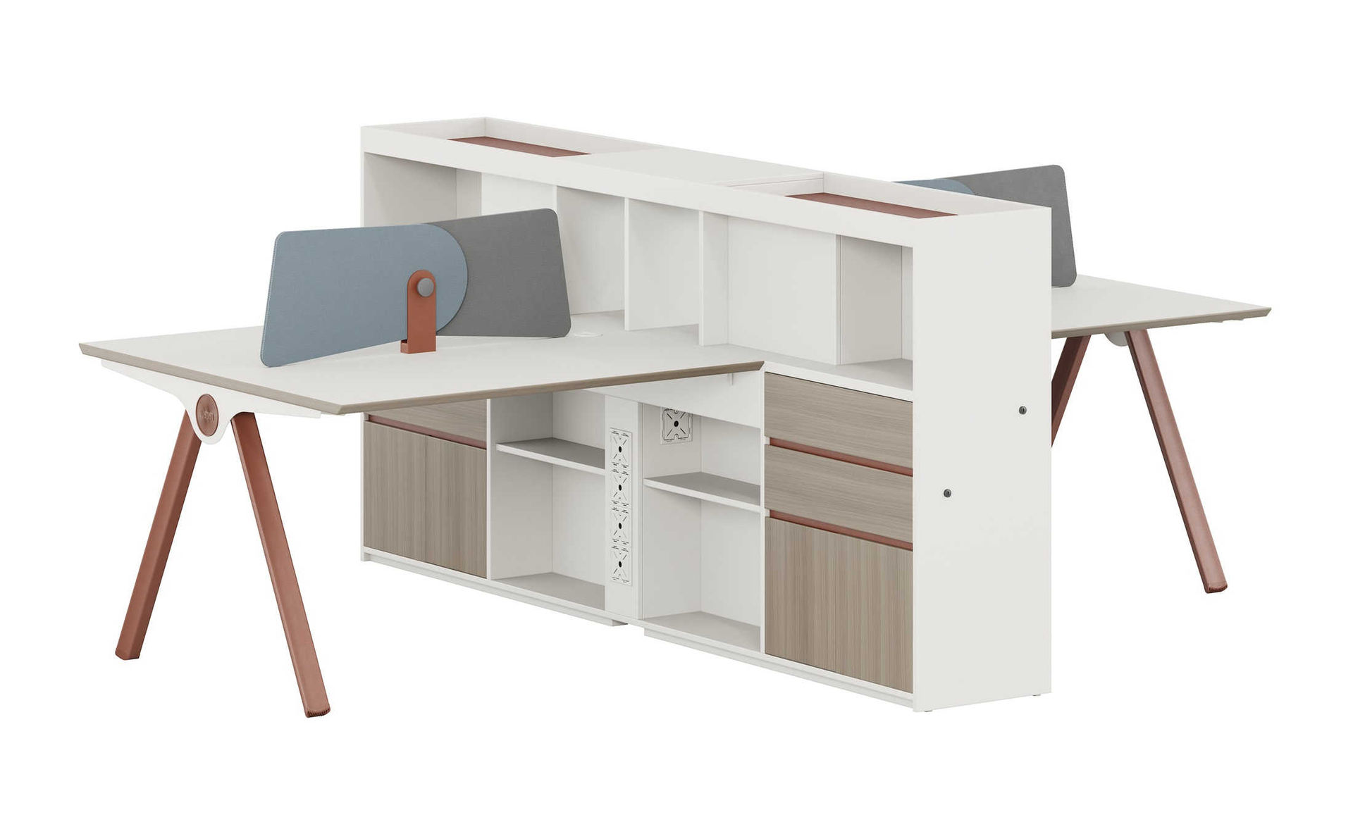 优格又名“有格”,代表了有品格、有格调。产品整体以“青春、时尚、动感”为设计主题,采用了大量的弧形与直线条交叉设计,将产品魅力展示的淋漓尽致。在一贯沉稳的深色办公配色中,大胆运用了白色、卡其棕色与浅色木纹的撞色搭配,打破产品配色原有的严肃氛围,赋予了产品生命力以及活力。独特的台脚与桌屏设计,动感十足,无不展示产品的细节之美。产品设计时尚,配置齐全,适合各种规模的办公场所。